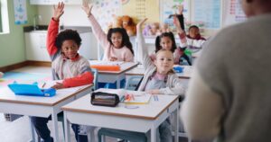 children-classroom-and-hands-raised-at-school-for-2024-08-13-00-22-14-utc